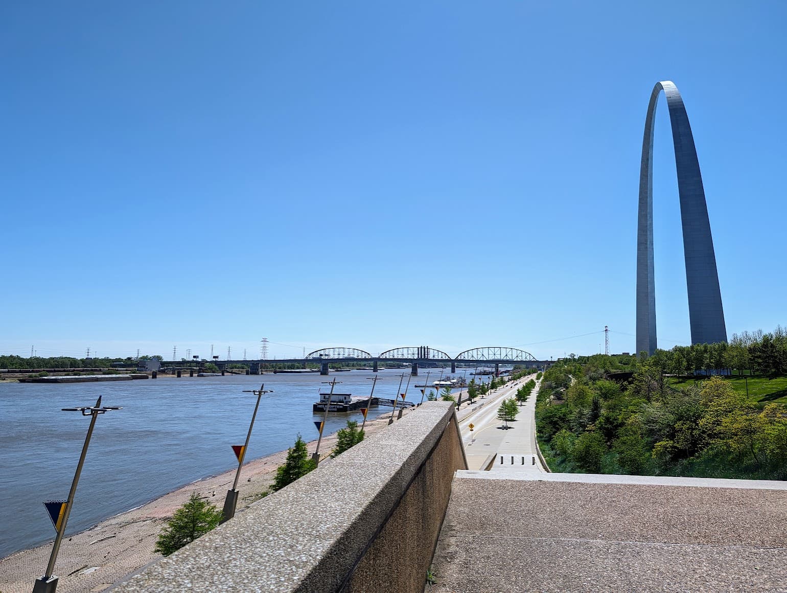 Ended the day in St. Charles (~30 mins northwest of St. Louis). Had a beer from a local brewery on a patio overlooking the Missouri river, listened to the birds chirping, and recalled my St. Louis speedrun.