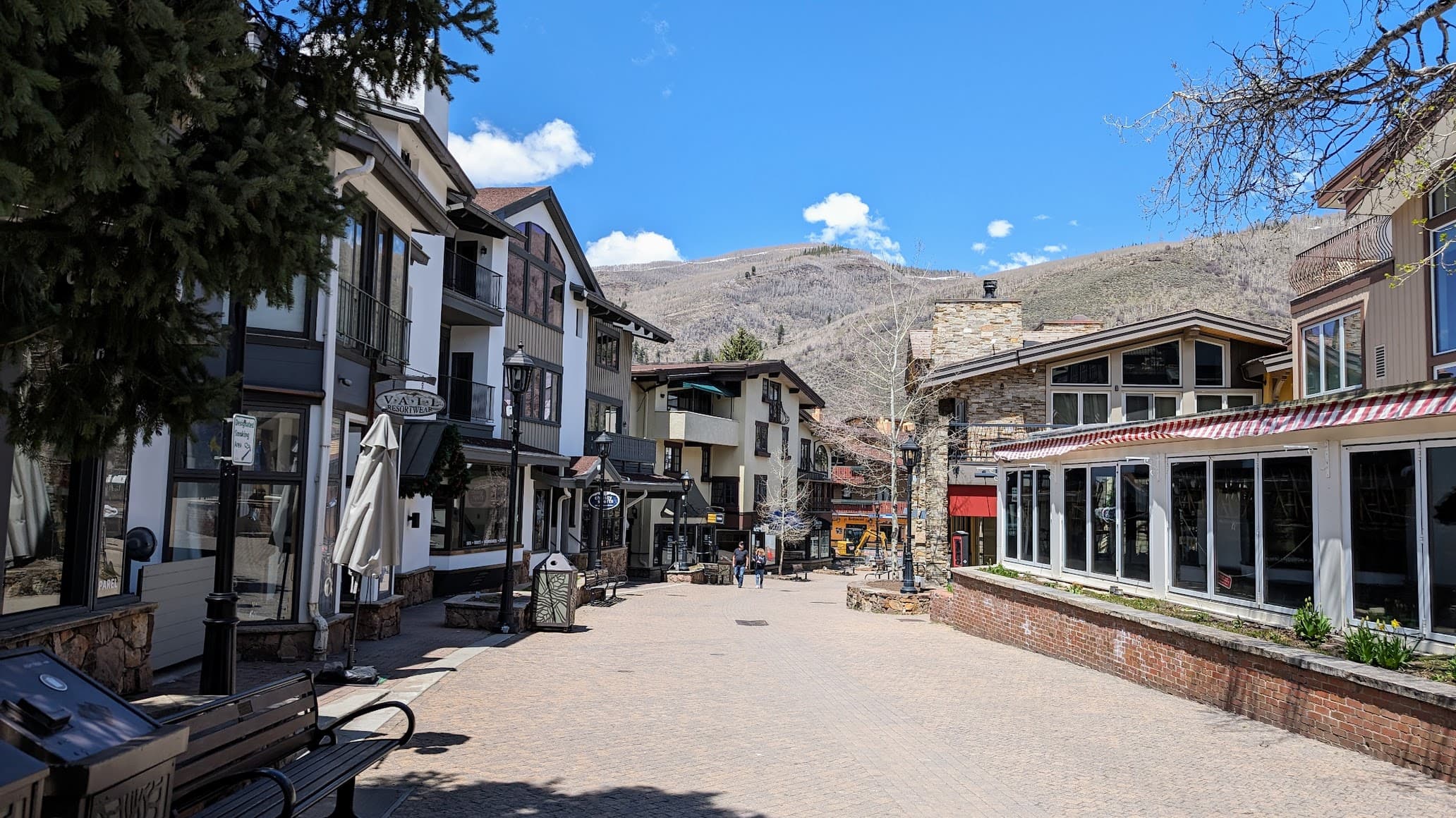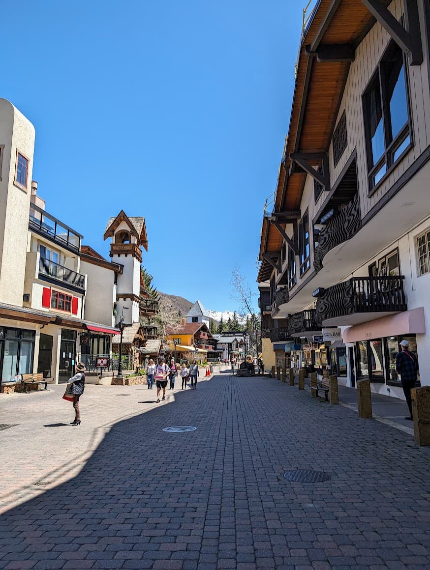 Just stopped for lunch in Vail. I liked how pedestrian-friendly it was (pedestrian-only really). A lot was closed since it's off-season, but enough was open for some grub and a coffee.