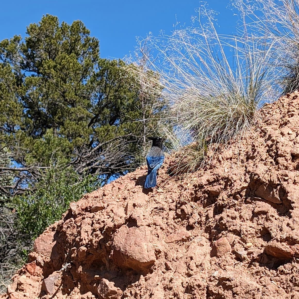 It overlooks the town and valley. About halfway up, there's a tree with a bunch of ribbons on it that has a whole story behind it. If you want to know more, just google "glenwood springs cancer tree". And I saw the bluejay's more fabulous cousin.