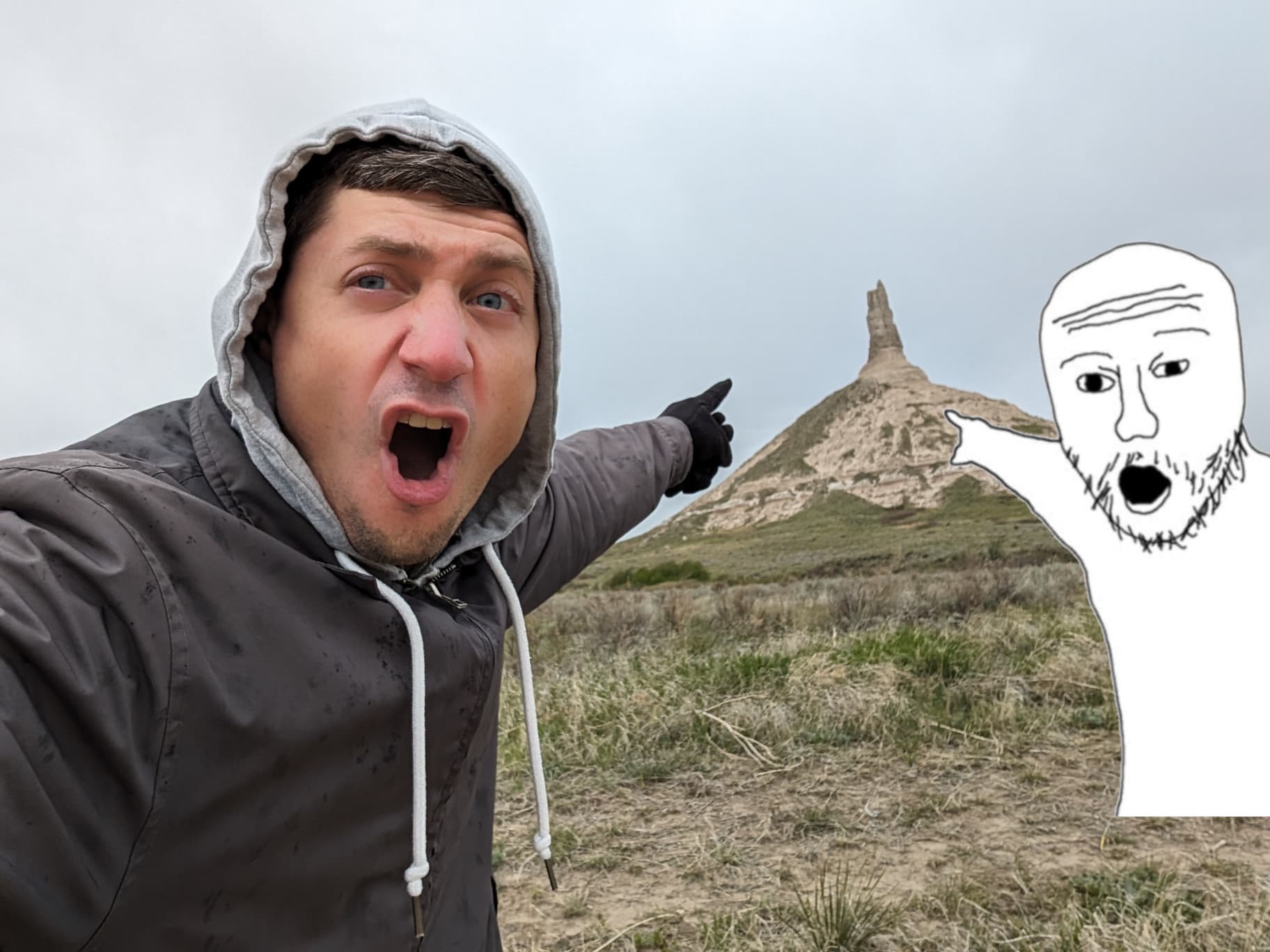 Chimney Rock was smaller than I was expecting. In fact, it's a lot smaller now than it was a hundred years ago because of erosion, but having played hours and hours of the Oregon Trail game, I was still breathlessly excited to see it.
