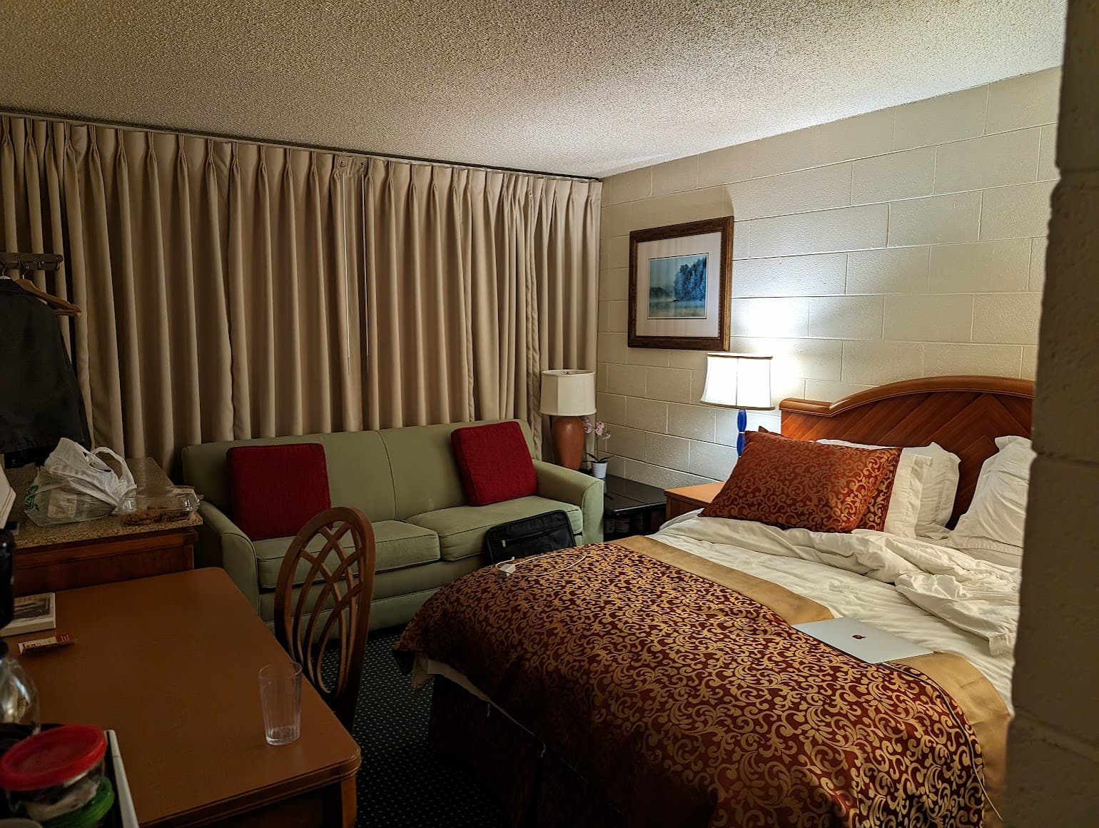 It looks like a prepper or gun nut hotel, but it's actually ran by a really sweet asian family. Their 2-ish year-old tried to climb me as I checked in. The walls were all cinderblock and the furniture was old, but the room was immaculate. It was like staying in your grandma's doomsday bunker. Five stars.